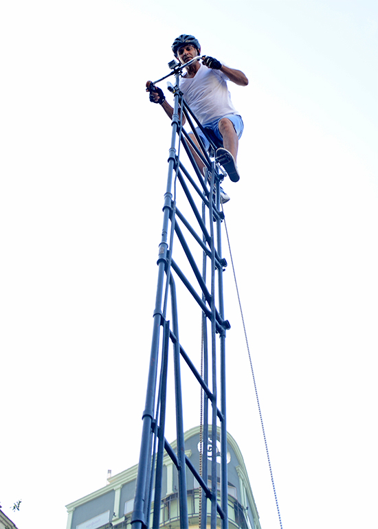A pocos minutos de las 9:00 de la mañana, aparecieron por una de las calles que desembocan frente al Capitolio habanero, el hombre y su bicicleta gigante. Ayudándolo a transportarla y filmando todos los incidentes un grupo de colaboradores cubanos y extranjeros que inspiraban a Félix Ramón Guirola a imponer este jueves el récord Guinness de montar en la bici más alta del mundo.
