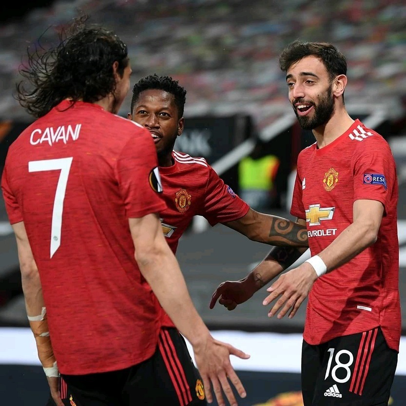 Édinson Cavani puso la igualdad a tres minutos de iniciar el segundo tiempo, y el propio uruguayo marcó el gol de la ventaja al 64. El otro que finalizó la noche con un doblete fue Bruno Fernández, autor del cuarto gol. Por los vencedores, también marcaron el campeón del mundo Paul Pogba y Mason Greenwood.