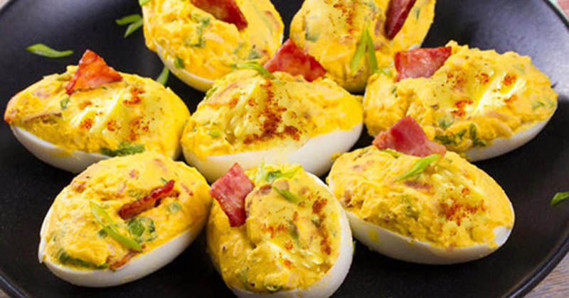 Hervir unos huevos y sustituir las yemas por unas cucharadas de pasta, es una merienda fácil de preparar. (Tomada de recetasfacilesreunidas.com).