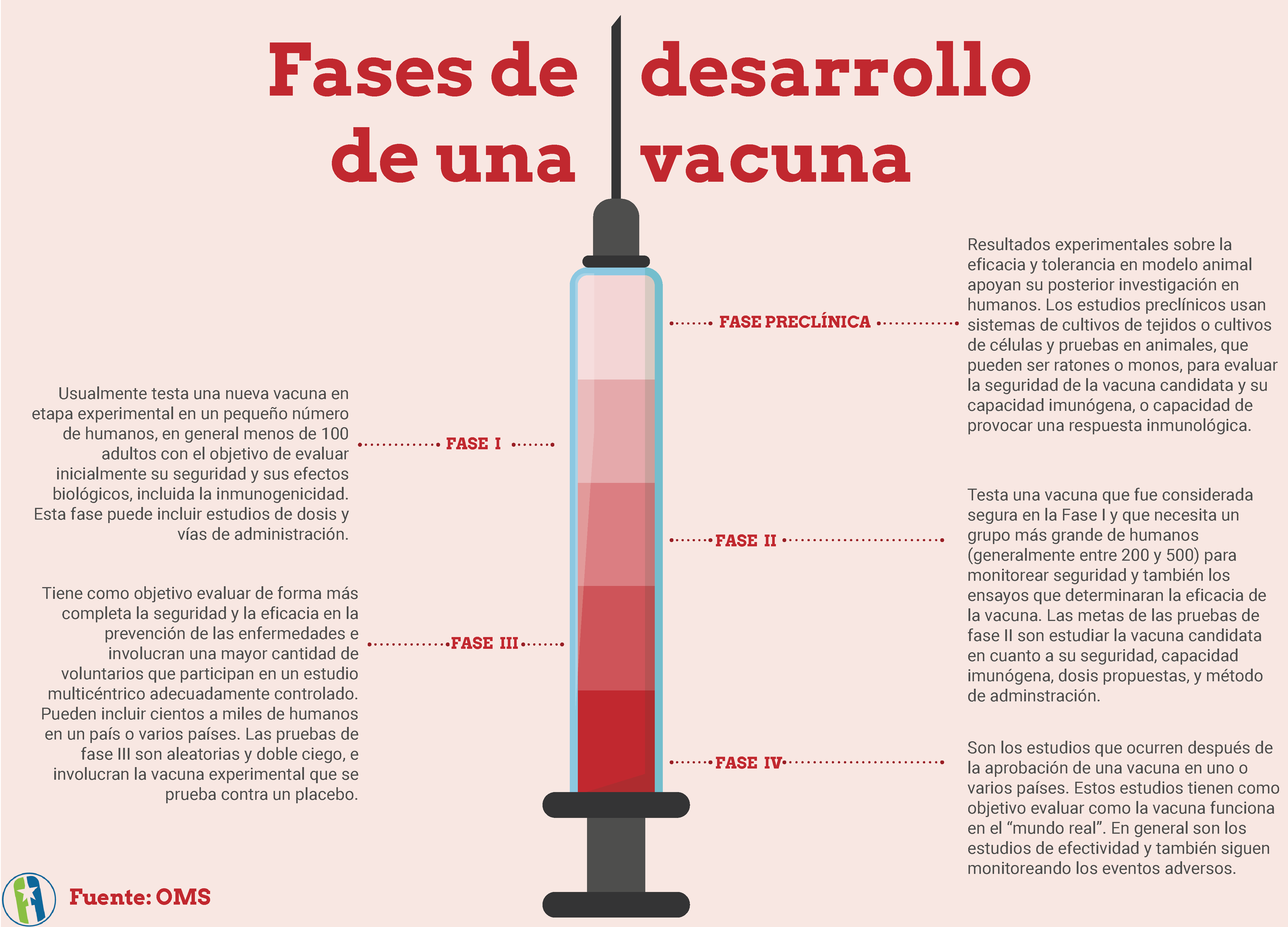 De acuerdo con la OMS, por lo general el desarrollo de una vacuna puede llevar de 10 a 15 años. No obstante, por la necesidad actual de encontrar un fármaco inmediato contra la COVID-19, Tedros Adhanom Ghebreyesus, director general de la Organización autorizó a los investigadores a comprimir el proceso con la ejecución de fases de ensayos clínicos simultáneamente. Aun así, Adhanom ha reiterado en varias ocasiones la importancia de ser cautelosos, pacientes y no crear falsas expectativas alrededor de la vacuna.