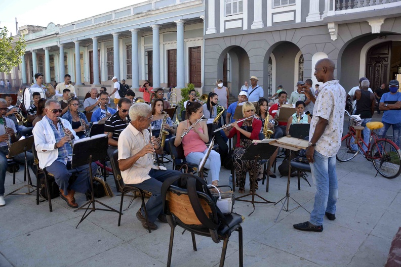 La Banda Municipal de Concierto de Cienfuegos dedicó su ineludible retreta a Fidel Castro, líder histórico de la Revolución cubana, en áreas del Prado cienfueguero, este 13 de agosto de 2020, en ocasión del aniversario 94 de su natalicio (Foto: Modesto Gutiérrez Cabo/ ACN)