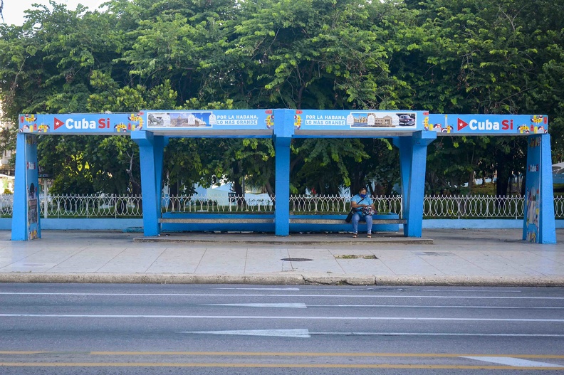 Así luce una parada de ómnibus en una de las arterias más transitadas del Vedado capitalino, tras decretarse La Habana en fase autóctona limitada (Foto: Ariel Ley Royero/ ACN)