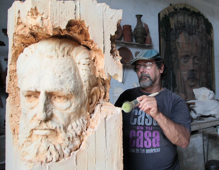 Obras escultóricas forman parte de la exposición que con el título de "Reencuentro" , del artista de la plástica Félix Madrigal, como homenaje a Fidel Castro Ruz, en el aniversario 94 del natalicio del líder de la Revolución cubana en la central provincia de Sancti Spíritus (Foto: Oscar Alfonso Sosa/ ACN)