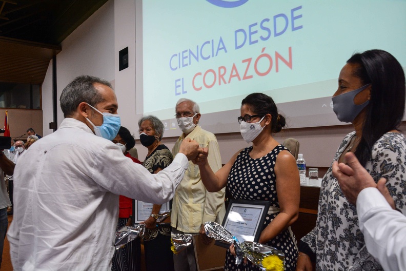 El viceministro de Ciencia, Tecnología y Medio Ambiente (CITMA) Armando Rodríguez Batista (I), hizo entrega de la Categoría de Investigador Titular 2020 a varias de las provincias de La Habana, Artemisa y Mayabeque, en el Palacio de las Convenciones.