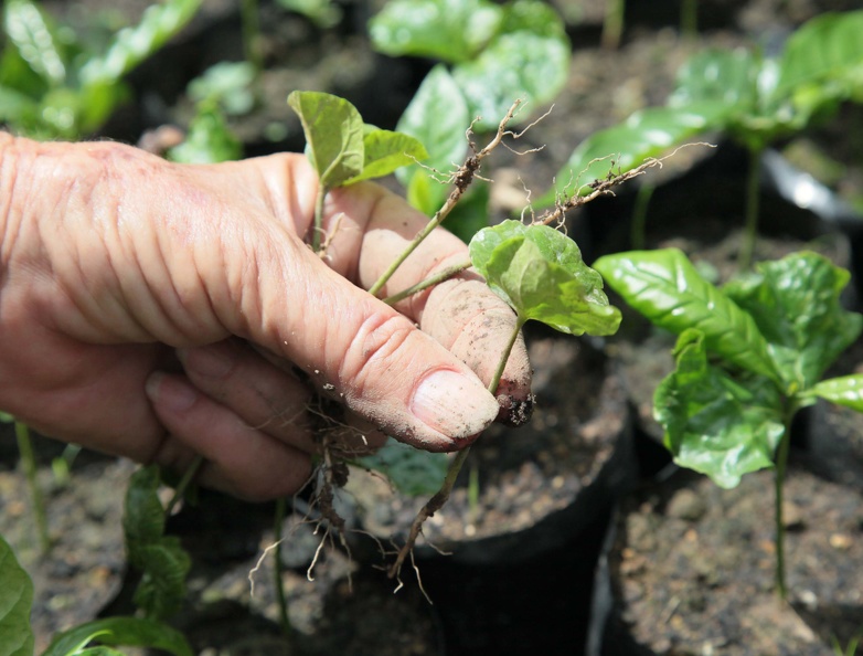 El clon de café vietnamita ya crece en los viveros y en esta campaña sellará cafetales en el llano, la montaña y la premontaña, como parte del programa de desarrollo cafetalero del país, en Sancti Spíritus. (Oscar Alfonso Sosa/ACN)