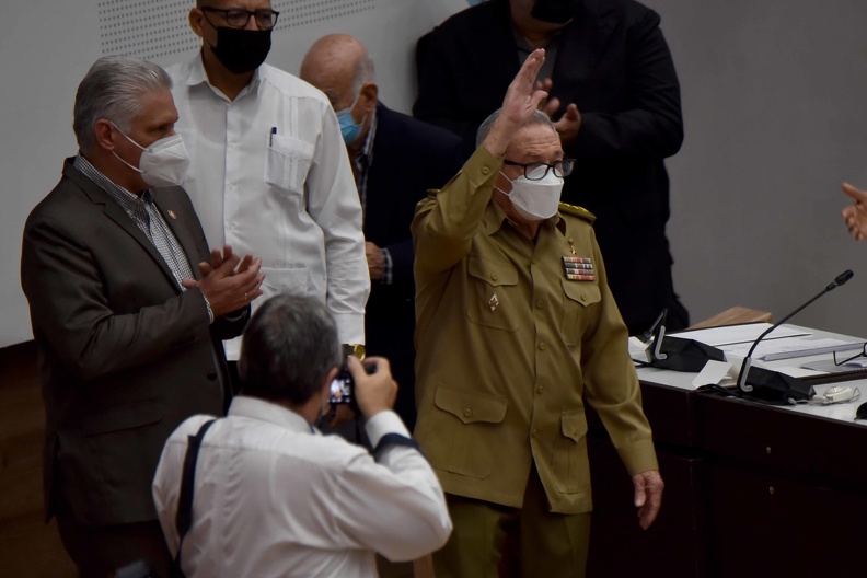 El General de Ejército Raúl Castro (D) y Miguel Díaz-Canel (I), Primer Secretario del Comité Central del Partido Comunista de Cuba y Presidente de la República, a su llegada al salón plenario del Palacio de Convenciones de La Habana, en el inicio del VIII periodo ordinario de sesiones de la Asamblea Nacional del Poder Popular (ANPP), en su IX Legislatura, el 21 de diciembre de 2021. ACN FOTO/Omara GARCÍA MEDEROS