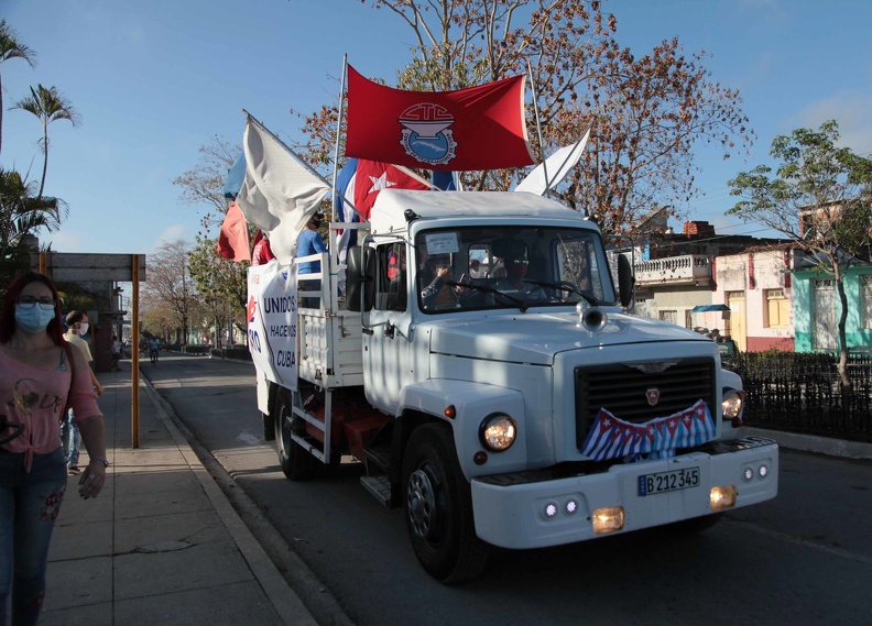 En el Día del Proletariado Mundial, compromiso del pueblo con su proyecto como país, desarrollando iniciativas desde casa y el centro de trabajo, para celebrarlo de una manera diferente, debido a la pandemia por la COVID-19, en Cienfuegos. (Modesto Gutiérrez Cabo/ACN)