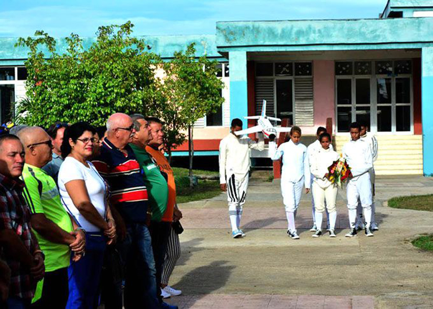 Alumnos y profesores de la Escuela de Iniciación Deportiva (EIDE) Pedro Batista, de Bayamo, se suman al homenaje de las víctimas del avión de Barbados (Foto: Granma).