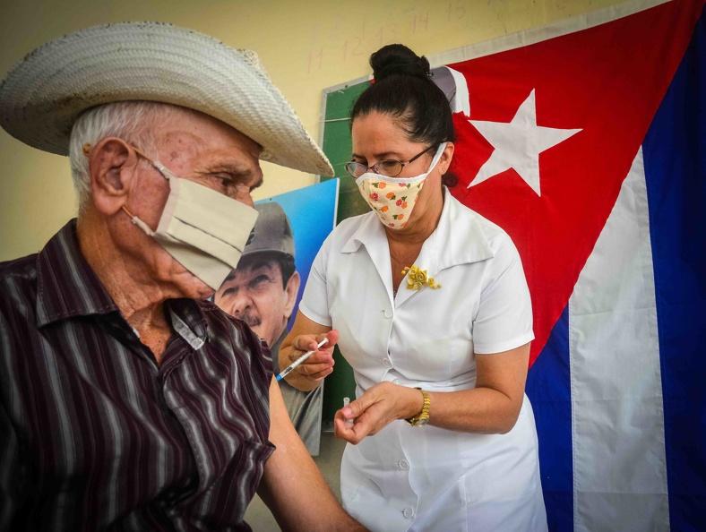 Continúa la etapa inicial de la vacunación masiva con Abdala donde participa la población mayor de 19 años de edad con riesgo epidemiológico y grupos de riesgos, en Las Tunas. (Foto ACN)