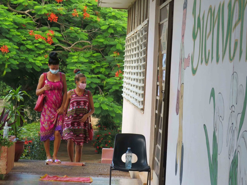 La escuela primaria Ignacio Agramonte, del poblado rural de Banao, fomenta hoy el respeto y la distinción a los trabajadores del sector de la Educación en su quehacer sistemático contra la pandemia, en Sancti Spíritus. (Foto ACN)