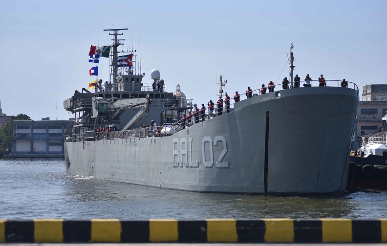 El buque de la Marina Armada de México, Libertador, llega a la Terminal Marítima Haiphong, en La Habana, Cuba, con ayuda humanitaria desde el puerto de Veracruz, en el sureste de México. (Foto ACN)
