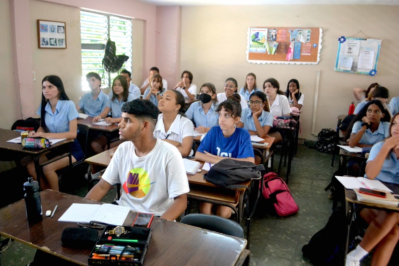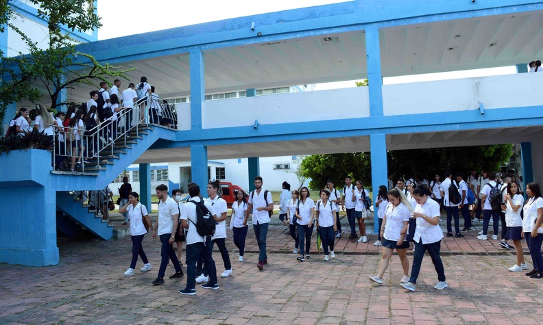 Estudiantes que reanudan el curso escolar 2021-2022, en el preuniversitario Tomás David Rollo, en el municipio Plaza. (Yury Díaz Caballero/ACN)