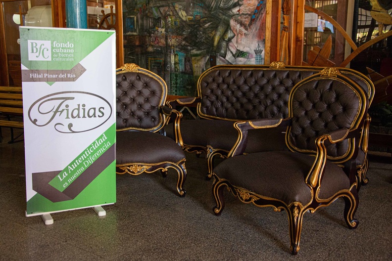 Mobiliario, objetos decorativos, calzados, textiles, entre otros, son las propuestas de los artesanos y artistas del Fondo Cubano de Bienes Culturales, en la Feria Nacional de Artesanía enmarcadas en la jornada por el Día del Trabajador de la Cultura, en Pinar del Río, Cuba, el 16 de diciembre de 2021. Rafael Fernández /ACN
