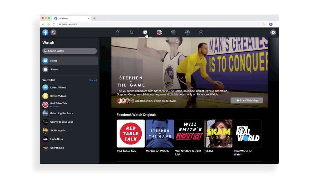 La pestaña de 'Watch', destinada a mirar vídeos, será la única que contará con un diseño claramente diferenciado, con un fondo negro.