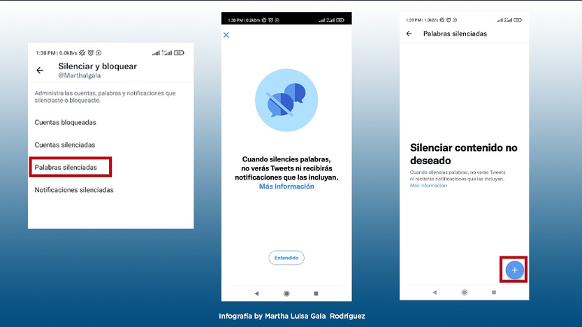 - Silenciar - Eliminar de tu línea de tiempo los tuits de una cuenta, sin bloquearla ni dejar de seguirla.