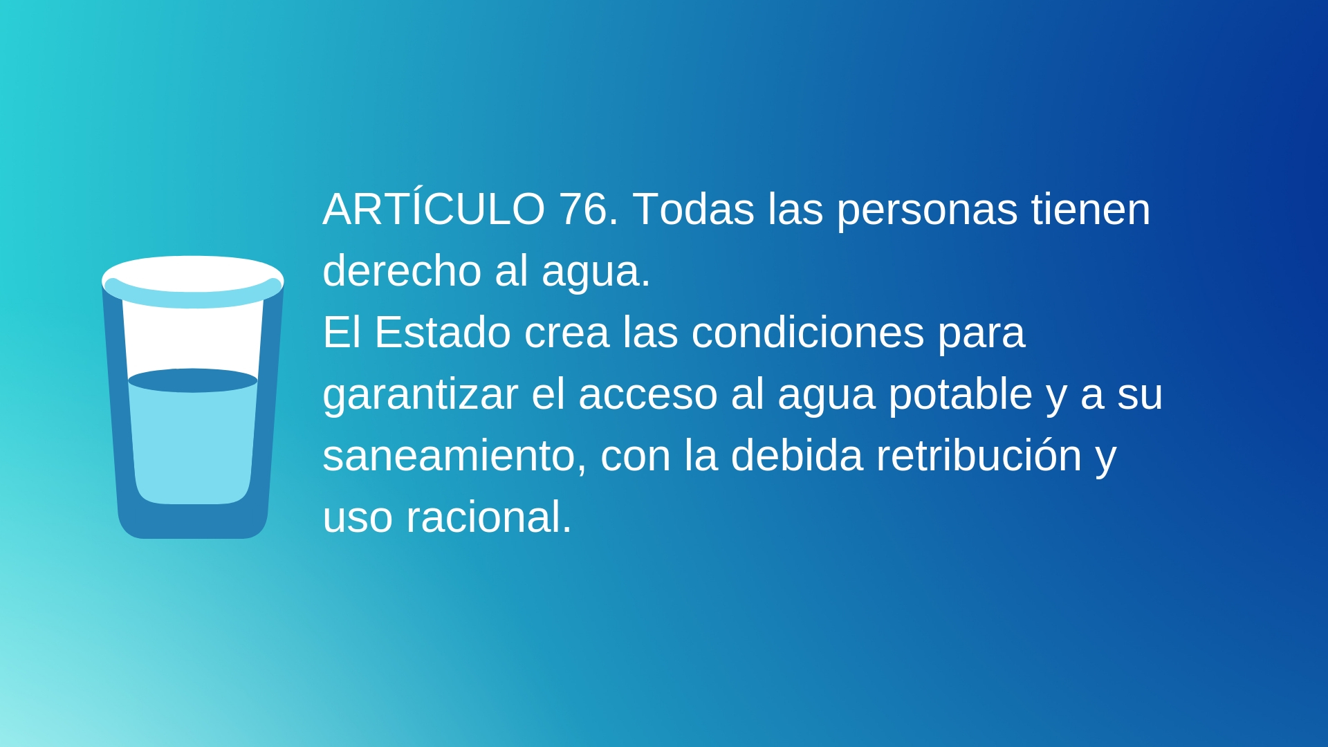 En Cuba el acceso al agua potable y al saneamiento han estado en los planes de gobierno desde el triunfo de la Revolución. Desde la Voluntad Hidráulica de Fidel hasta el actual Plan Hidráulico Nacional y la Tarea Vida, sobre lo que hablaremos más adelante, se ha trabajado para garantizar lo que ya la Nueva Constitución reconoce como derecho de los cubanos: