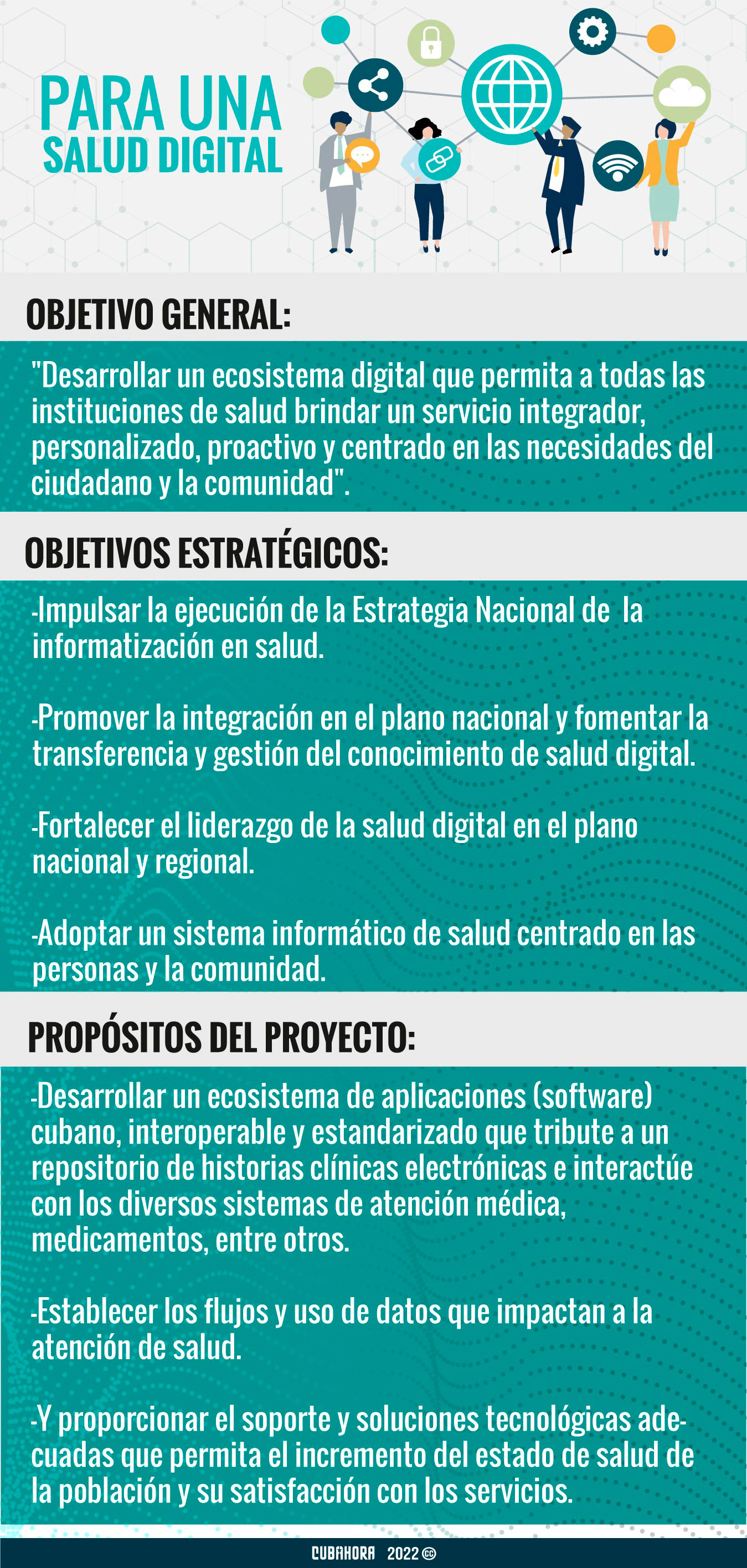 Se trata de "una transformación cultural de las instituciones de salud, que impacte de manera positiva en la calidad y la seguridad de servicios centrados en el paciente, la familia y la comunidad, como resultado de la informatización de los procesos asistenciales, docentes e investigativos, mediante la integración de manera interoperable de los procesos", explicó el doctor Dalsy Torres Dávila, uno de los especialistas que lidera la iniciativa.