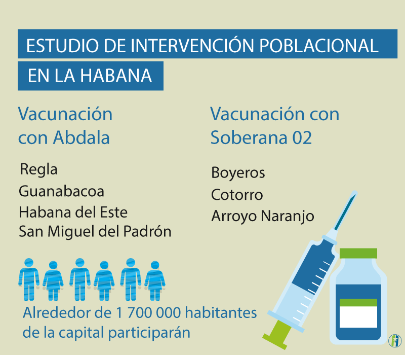 Próximamente todos los municipios de La Habana participarán en estudio de intervención poblacional con los candidatos vacunales Soberana 02 y Abdala. Se prevé que en las primeras semanas del mes de mayo alrededor de 1 700 000 habitantes de la capital sean inmunizados.