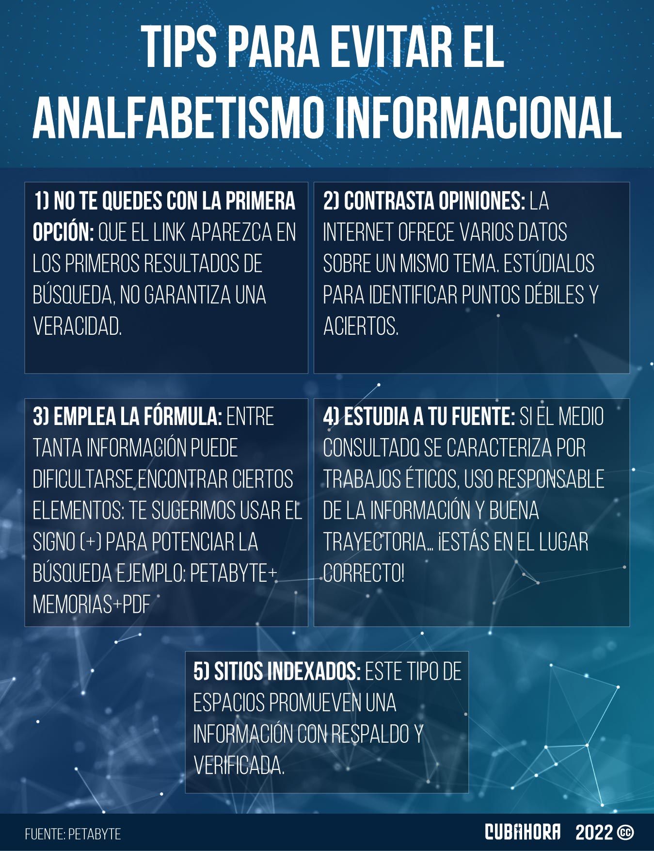 Aunque quisiéramos, no contamos con un manual a seguir, pero sí varios tips para no contribuir a la desinformación. La responsabilidad social de cada cual garantizará que aquellos nodos que se conectan con nosotros reciban los argumentos más confiables.