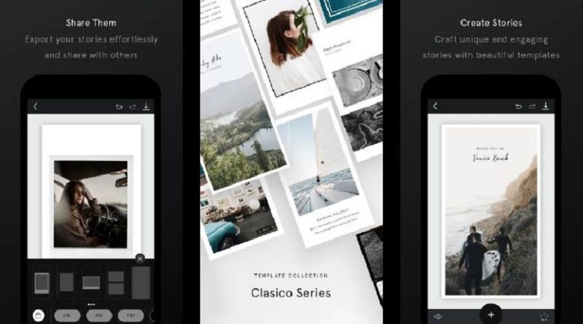 -StoryArt. Esta aplicación cuenta con más de 500 plantillas para crear historias personalizadas. Además, los usuarios pueden escoger entre 40 temas para editar sus fotos. Hay temas minimalistas, estilo cinematográfico, Mármol, etc. También permite añadir textos con diferentes fuentes y diseños.