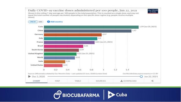 Cuba encabeza el listado de países que más dosis administra diariamente a su población…