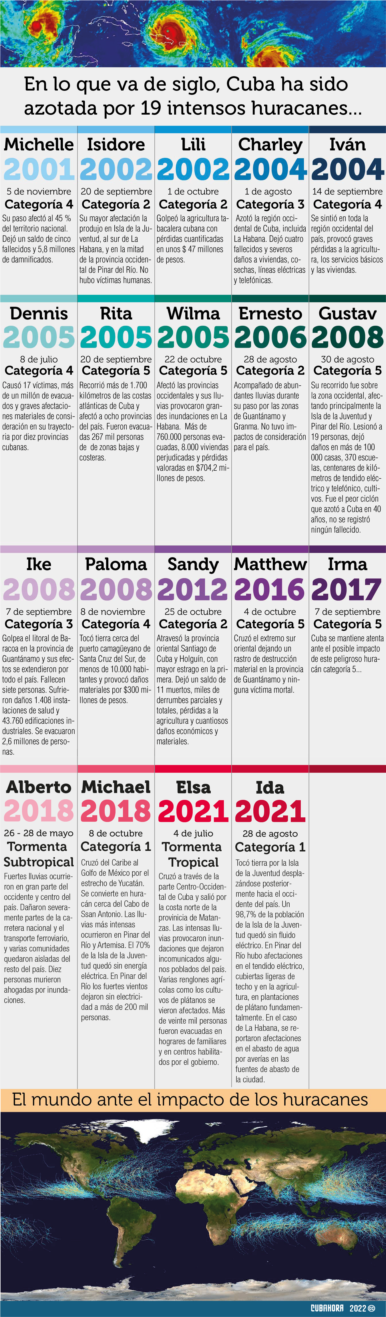 Es por ello que hoy te traemos estos #DatosConSentido de los 19 huracanes que han azotado intensamente a Cuba en lo que va de siglo.