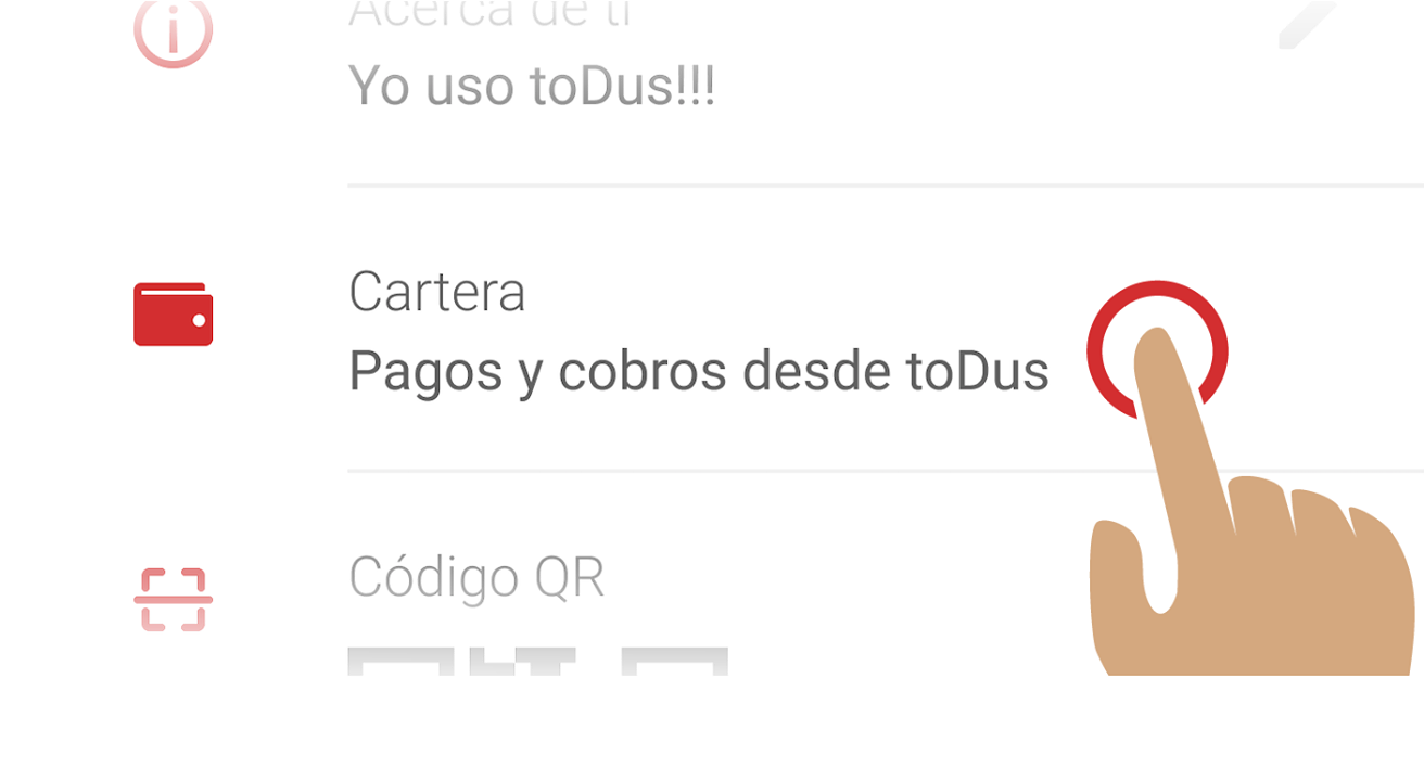 Lo primero es acceder a la nueva entrada que aparece en el Perfil de cada uno de los usuarios llamada CARTERA. Acá encontrarán los métodos de pago mediante los cuales se podrán hacer transacciones desde ToDus. Aunque en este momento solo aparezca la opción de saldo CUBACEL, la aplicación está lista para comenzar a asociarse a nuevas formas de pago electrónico.