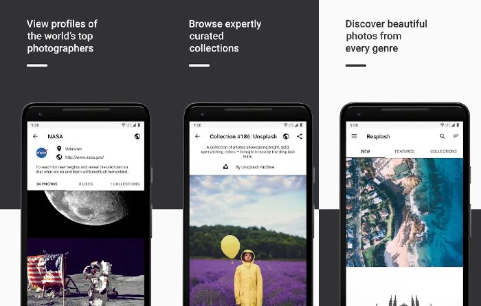 Esta red contiene una gran variedad de fotos en alta resolución y cuenta con fotografías libres de licencia. Se caracteriza por una interfaz sencilla y sobria, con elementos blancos y negros y con una organización muy cuidada e intuitiva de usar. El problema de Replash es que solo está disponible para teléfonos con sistema operativo Android.