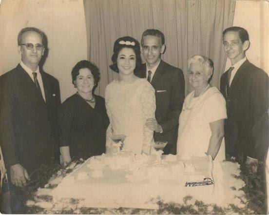 De derecha a izquierda Armando Martínez, Esperanza González Caridad Martínez, Alberto Luberta, Celia Noy y Armando Luberta en la boda de Caridad y Alberto el 21 de septiembre de 1968. Fuente: Blog Por Mano Propia