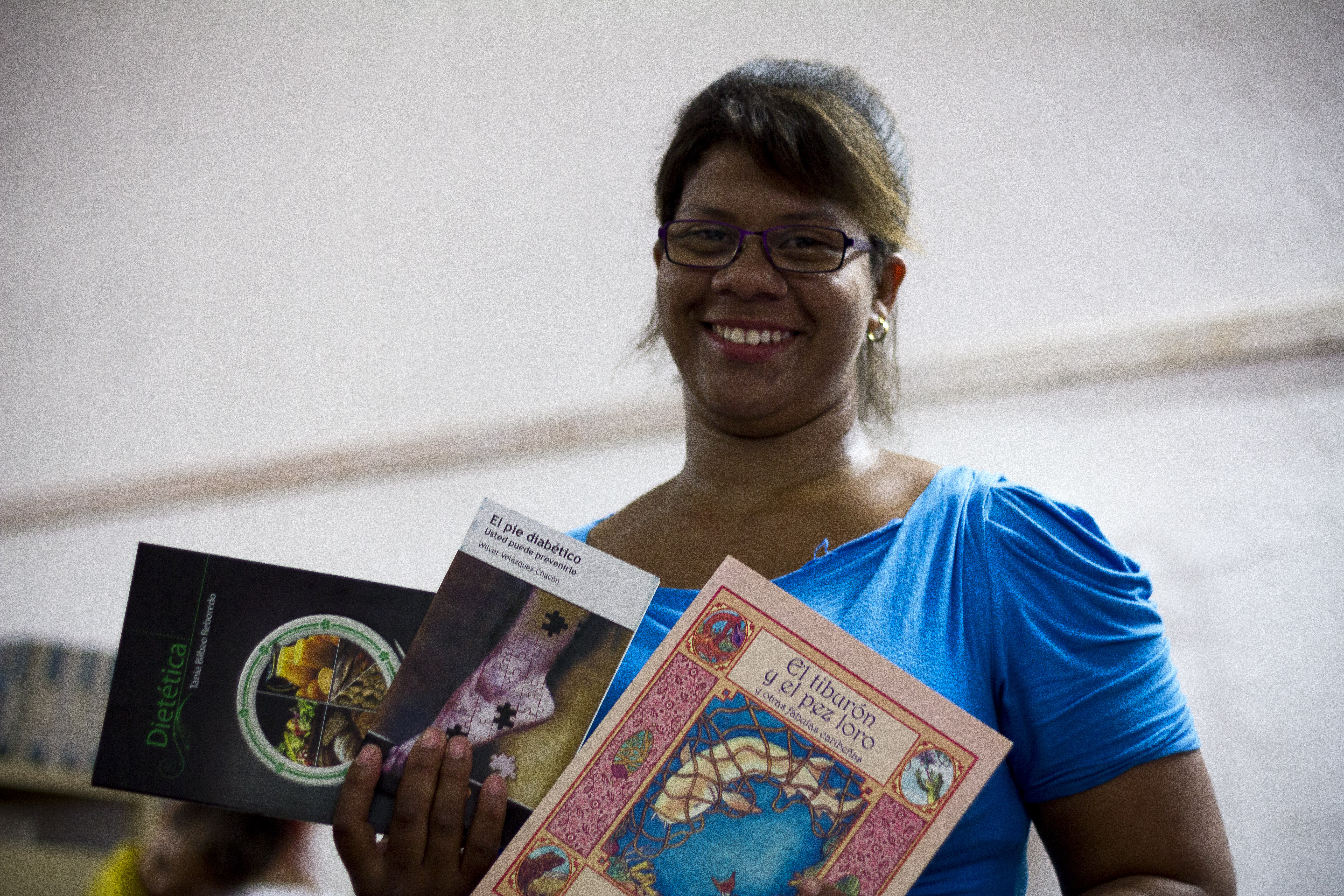 “Esta vez compré libros específicos para mi mamá, compré el del pie diabético, quiero que ella se prevenga contra esa enfermedad, libros de dietética para ver si eso me ayuda a bajar de peso y libros de cuentos para mi hijo”.