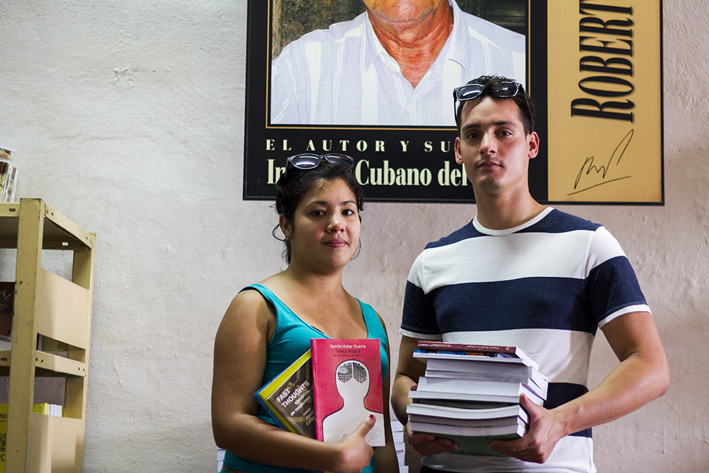 “Estamos buscando libros que sean didácticos, que tengan alguna enseñanza y les sirvan para sus estudios. El sábado encontramos varias obras de todos los patriotas cubanos, los mapas de la guerra de liberación, así como libros sobre las aves que habitan en Cuba. A ella le gustan mucho los libros sobre Cuba”.
