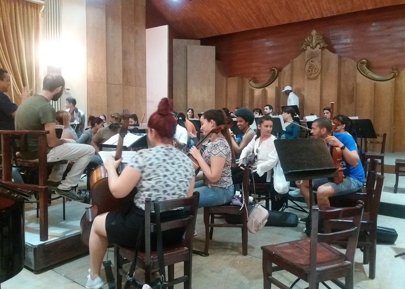 La Orquesta Sinfónica de Matanzas ensaya junto al maestro José Antonio Méndez Padrón. (Jessica Mesa/Cubahora).