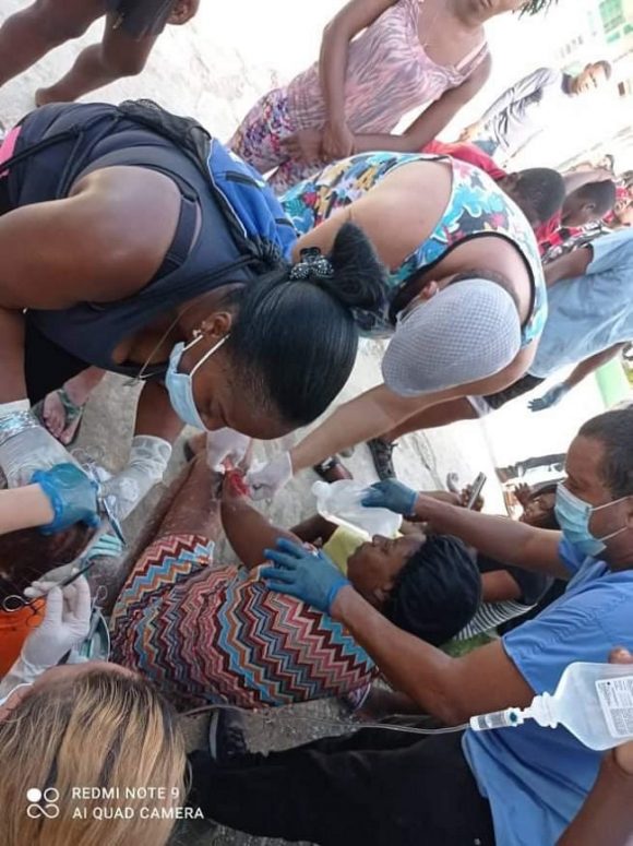 Señaló que las instituciones hospitalarias resultaron dañadas, por lo cual los médicos y enfermeros cubanos, junto con el personal local, ofrecen los tratamientos de urgencia en las afueras de las instalaciones.