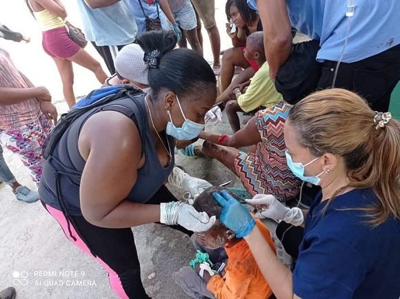 Tras el fuerte terremoto de magnitud 7.5 que estremeció Haití a las 8:29 AM de este sábado, los colaboradores cubanos ya brindan atención en las zonas afectadas de Haití.