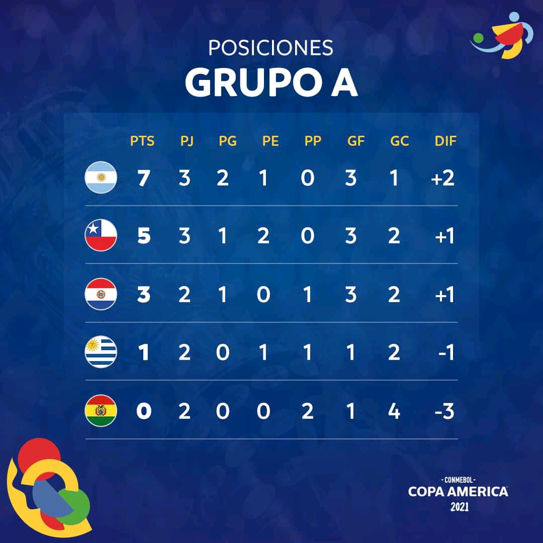 Tras estos resultados, Argentina quedó como líder del Grupo A con siete puntos, seguido de Chile con cinco (ambos clasificados), mientras que Paraguay suma tres, Uruguay uno y Bolivia aún no extrena la casilla de puntos.