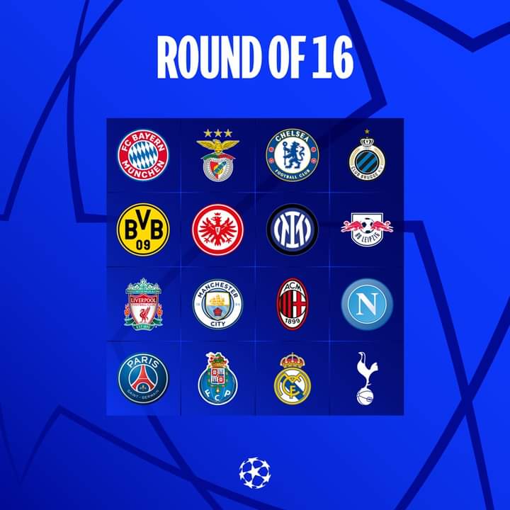Los países mejor representados en los octavos de final serán Alemania (Bayern, Frankfurt, RB Leipzig y Dortmund) e Inglaterra (Manchester City, Chelsea, Tottenham y Liverpool) con cuatro cada uno, mientras que Italia logró clasificar a tres (Napoli, Inter y Milan). Dos tendrá Portugal (Porto y Benfica), y con uno aparecen Bélgica (Brujas), Francia (PSG) y España (Real Madrid).