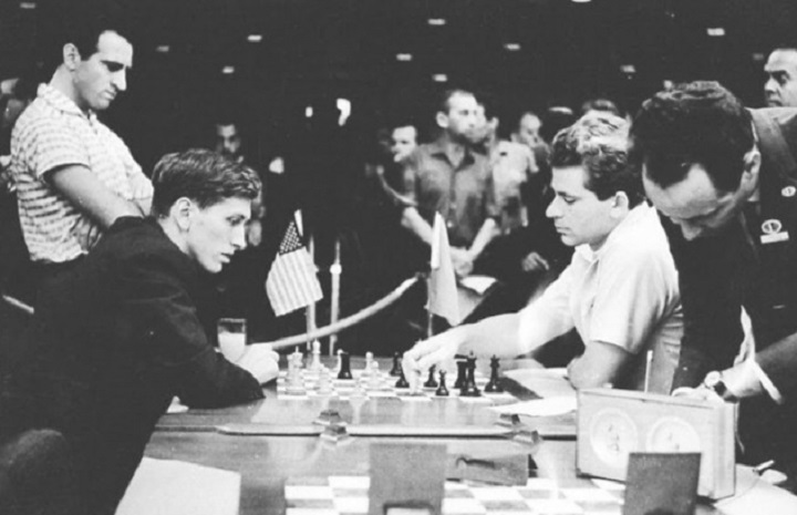 Partida disputada entre los GM Bobby Fischer y Boris Spasski durante la olimpiada mundial de ajedrez, realizada en La Habana en 1966. (Tomada del periódico Trabajadores)