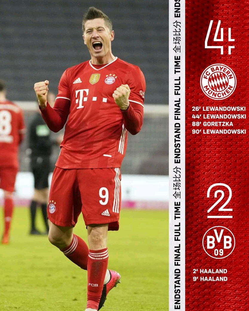 La estrella del conjunto bávaro se impuso así en duelo de goleadores a la sensación noruega Erling Haaland, quien se robó la arrancada marcando par de dianas en los primeros nueve minutos, pero tuvo que salir lesionado del encuentro en la segunda mitad.