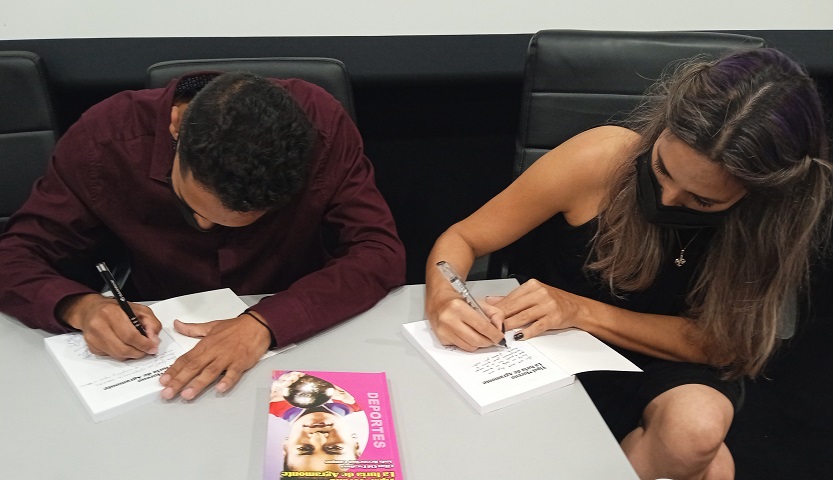 Los autores Lilian Cid y Andy Bermellón firman los ejemplares.