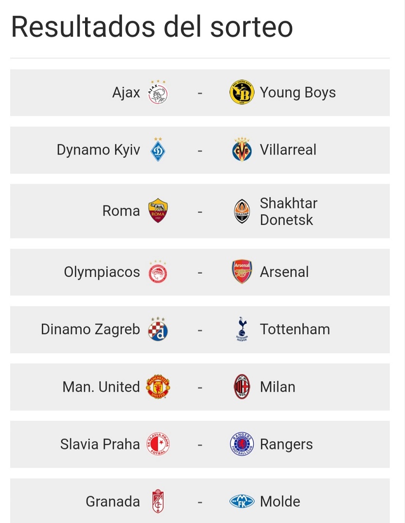 Ajax de Holanda jugará la eliminatoria ante Young Boys suizo, en tanto la final de la Europa League se las verá con el siempre difícil Shakhtar Donetsk de Ucrania. Por último, en uno de los desafíos de menos caché, Slavia Praga enfrentará al Rangers, vigente campeón de Escocia.
