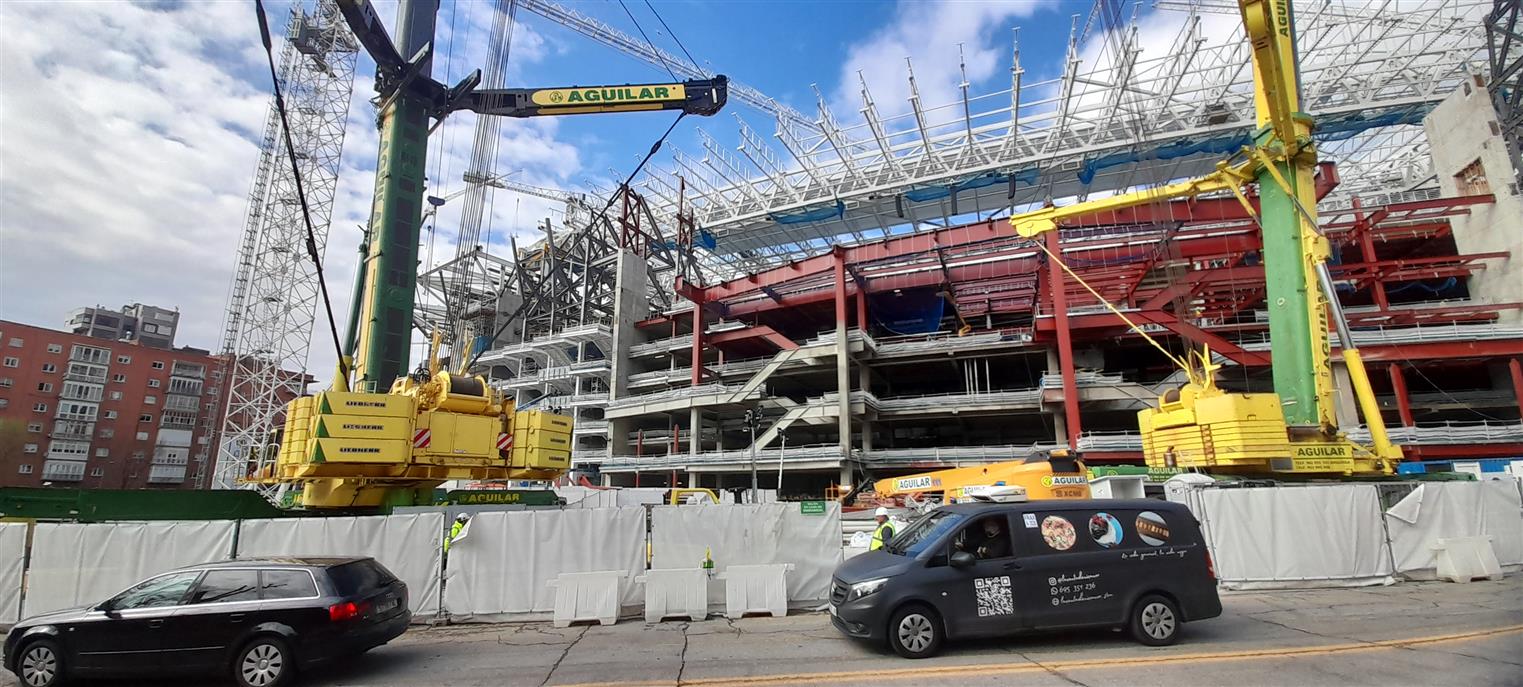 En este momento, los operarios se encuentran laborando en el Fondo Norte del Bernabéu, donde se instalan las últimas piezas de la viga museo, zona para la que esta misma semana llegará una pieza muy importante que permitirá completar parte de los trabajos planificados.