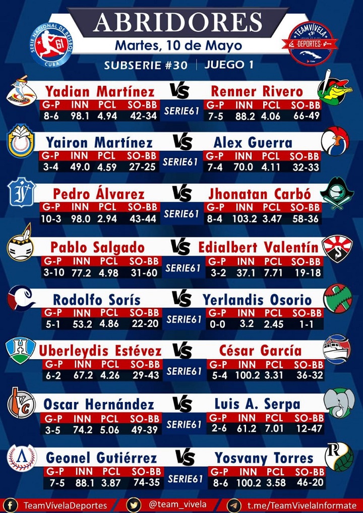 Por los otros dos cupos hay más rivalidad. Los actuales ocupantes de los escaños siete y ocho, Matanzas y Pinar del Río, respectivamente, si se imponen en los dos juegos de esta semana obligan a sus rivales a barrer para producir empates.