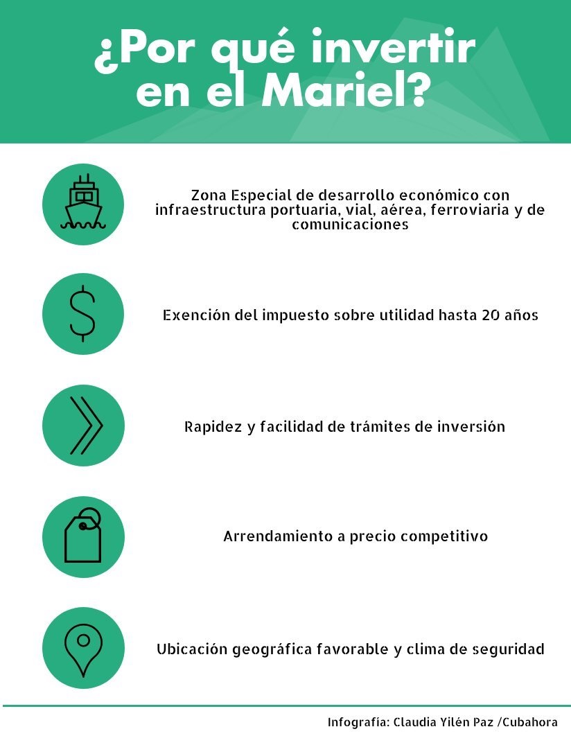Fue en enero de 2013 cuando se estableció la Zona Especial de Desarrollo Mariel a través de la Ley 313 del 2013 y en el 2014 se aprobó la Ley de Inversión Extranjera (Ley 118), según la cual esta actividad "se orienta a la diversificación y ampliación de los mercados de exportación, el acceso a tecnologías de avanzada, la sustitución de importaciones, priorizando la de alimentos. Del mismo modo, a la obtención de financiamiento externo, la creación de nuevas fuentes de empleo, la captación de métodos gerenciales y la vinculación de la misma con el desarrollo de encadenamientos productivos, así como al cambio de la matriz energética del país mediante el aprovechamiento de fuentes renovables de energía".