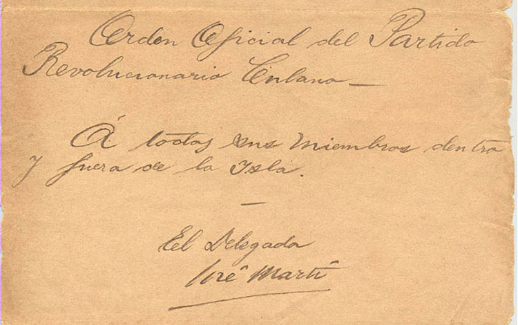 Orden de Alzamiento firmada por José Martí como Delegado del Partido Revolucionario Cubano (PRC), cuyo uno de sus originales está en el Museo de Historia de la provincia de Sancti Spíritus. (Tomada del periódico Vanguardia)