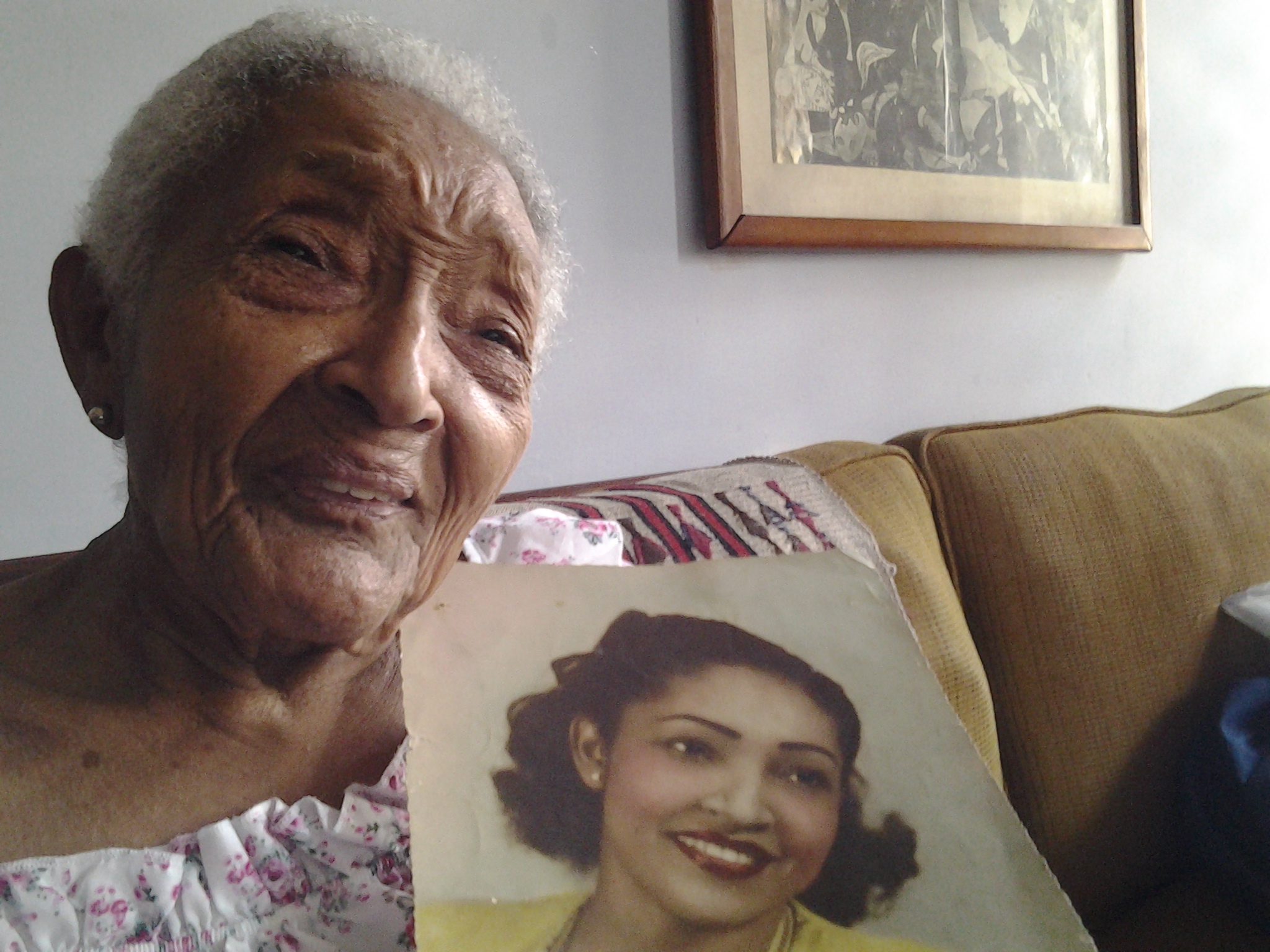 Panchita Ulloa Romero me muestra una foto de cuando era joven (Foto: María del Carmen Ramón/Cubahora)