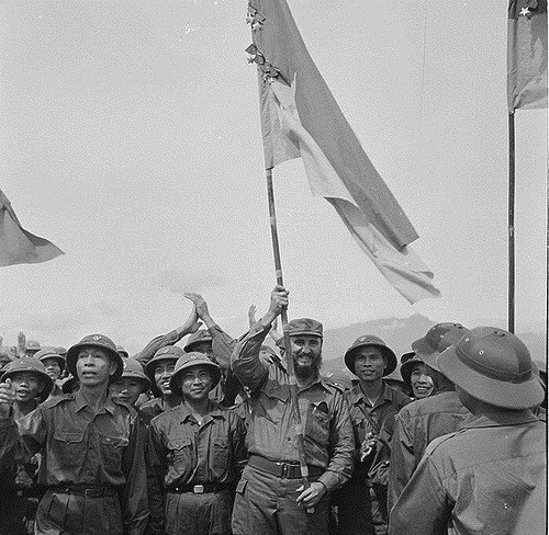 Fidel ondea la bandera vietnamita en las zonas liberadas del Sur (Foto: fidelcastro.cu).