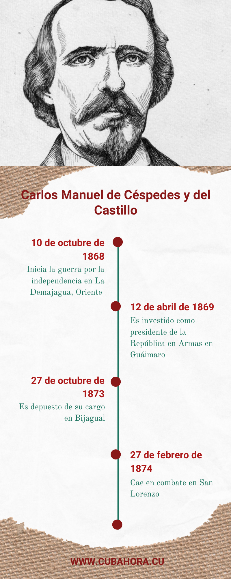 El 27 de febrero de 1874 cayó Carlos Manuel de Céspedes en desigual combate en San Lorenzo, un pequeño poblado levantado en las entrañas de la Sierra Maestra. A pesar de que peleó hasta último momento, se impuso la sorpresa y la superioridad de los españoles que iban tras él.¿Cuáles fueron las circunstancias que rodearon ese trágico acontecimiento? A continuación se detallan algunas de ellas.