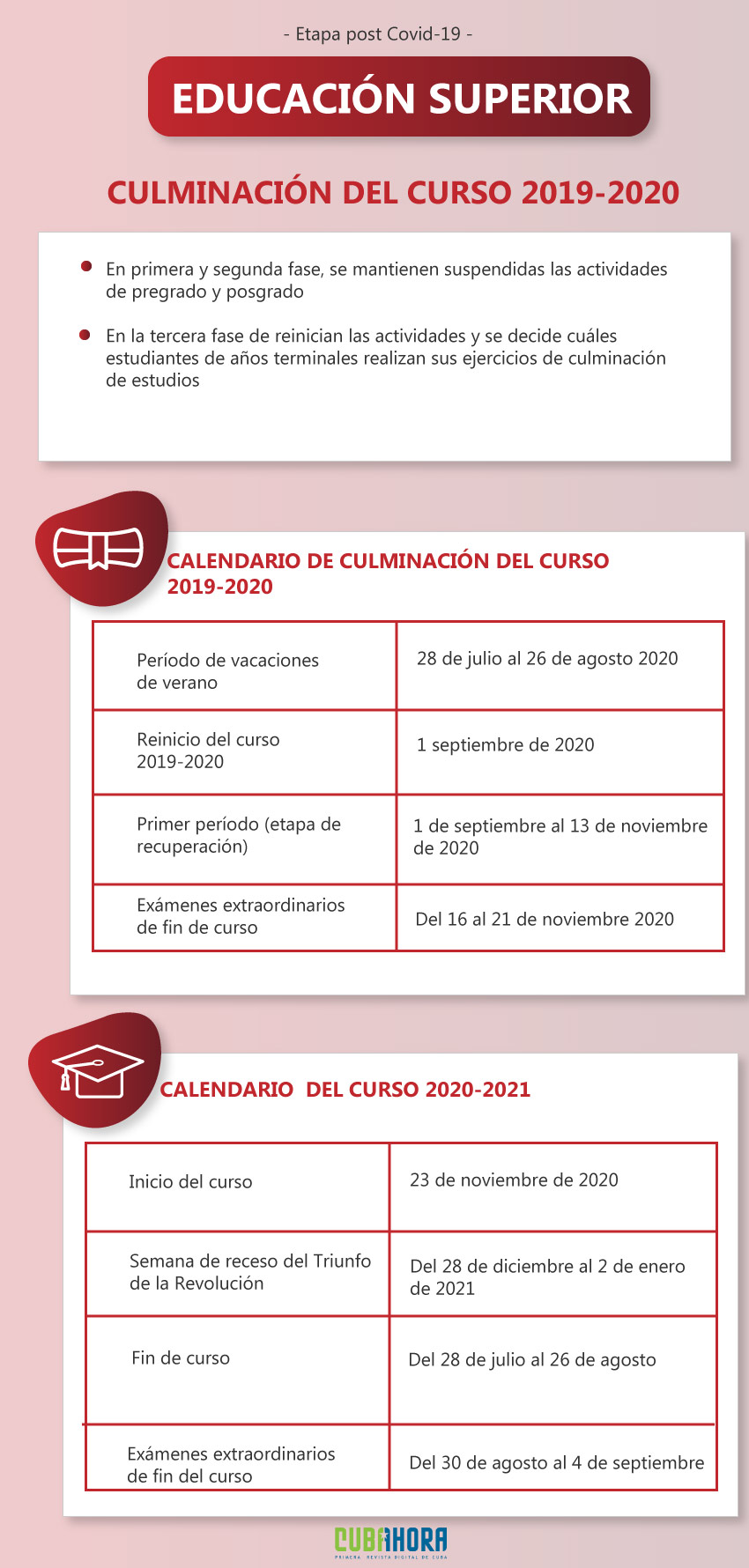 Sobre el inicio del curso 2020-2021 comentó que este inicia el 23 de noviembre y no se posterga el cierre de este, que será el 24 de julio de 2021.