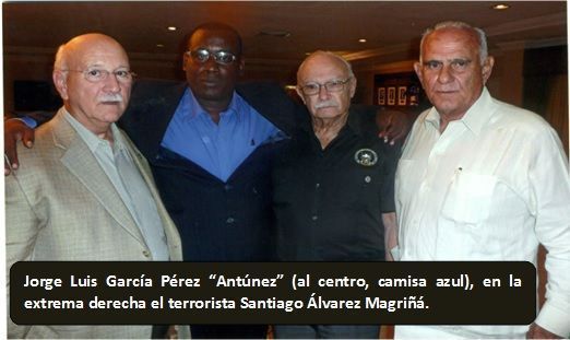 O apreciarlo en otra imagen junto a Santiago Álvarez Magriñat, el hombre que financió a terroristas para volar el Cabaret Tropicana y otras instalaciones turísticas cubanas, y fue el organizador de la entrada en yate de Luis Posada Carriles a Miami en el 2005.