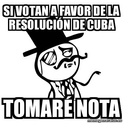 Cubahora contó en tiempo real el debate y la votación de ayer. Esta serie de memes fueron publicados en su cuenta de Twitter, a propósito de momentos relevantes de las intervenciones de Estados Unidos en la sesión.